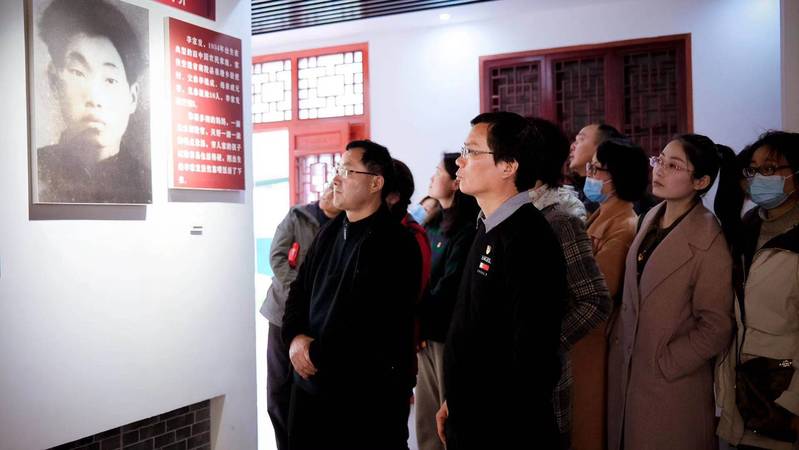 接着,大家驱车来到位于南陵县家发镇的李家发烈士纪念馆。李家发是“朝鲜民主主义人民共和国英雄”称号获得者,中国人民志愿军一级战斗英雄、“黄继光式英雄”。1953年7月13日,在朝鲜金城反击战中,李家发所在的模范1连奉命担任夺取金城东南屏障轿岩山主峰的艰巨任务。战斗中,李家发奋勇作战,接连用手雷炸掉敌人多个暗堡。在敌军疯狂反扑、主力部队被压制的关键时刻,身负七处重伤的李家发在没有爆破器材的情况下,毅然挺起胸膛,扑向敌人地堡的机枪眼,用他年仅19岁的青春生命为后续部队铺平了通往轿岩山主峰的道路,为战役的胜利作出了卓越贡献。教工党员们认真聆听了李家发烈士可歌可泣革命事迹,仔细观看了革命图文资料、浮雕以及视频影像资料。李家发烈士立志报国的年少风华和到生命最后一刻舍身报国的英勇事迹让全体党员深受教育、深受感动。参观接近尾声时,大家纷纷来到追悼英雄展厅,利用在线献花设备为烈士献上电子鲜花表达追思之情。最后,在纪念馆前鲜红的党旗下,全体党员在学院党总支书记孙浩然的带领下重温入党誓词,不忘入党初心,郑重宣誓。