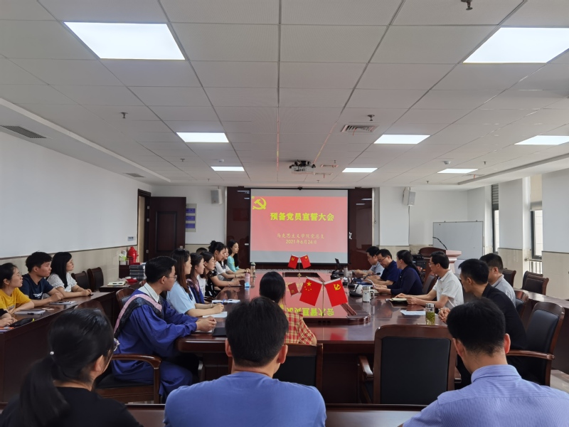 6月24日上午,马克思主义学院党总支预备党员宣誓大会在T1512会议室举行,学院党总支副书记、院长吴月红主持会议,学院党政领导、总支委员、支部书记、辅导员以及全体研究生党员参加。