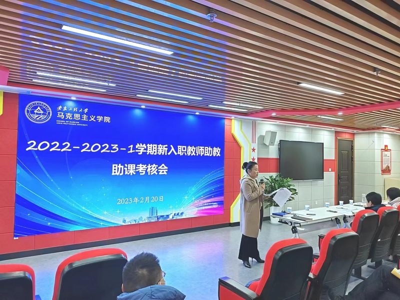 2月20日下午,马克思主义学院在学院1410实践教学中心开展2022-2023学年第1学期新入职教师助课助教考核工作。学院院长吴月红,副院长刘德军,新入职青年教师及指导教师参会。考核组由学院督导组成员及教研部主任组成。